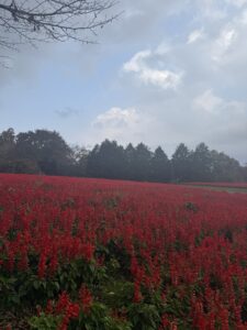 赤や黄色が風に揺れて、季節がまるごと迎えてくれたような景色でした。